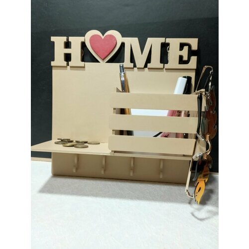 Ключница настенная деревянная с полочкой HOME, 4 крючка