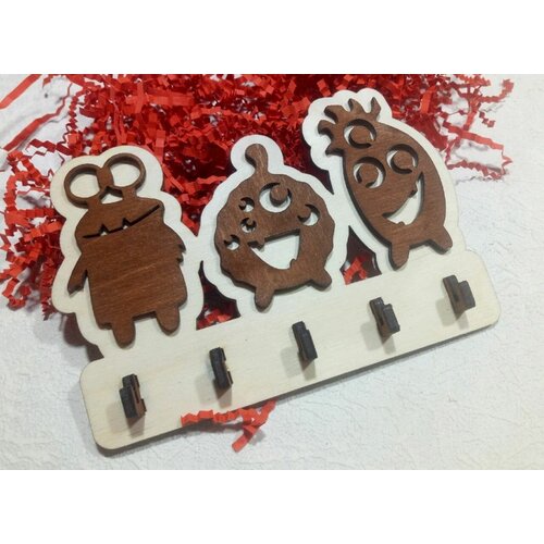 Ключница деревянная "Монстрики", 5 крючков