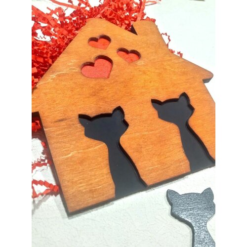 Ключница деревянная "Кошкин дом", два брелока , размер 16х15см