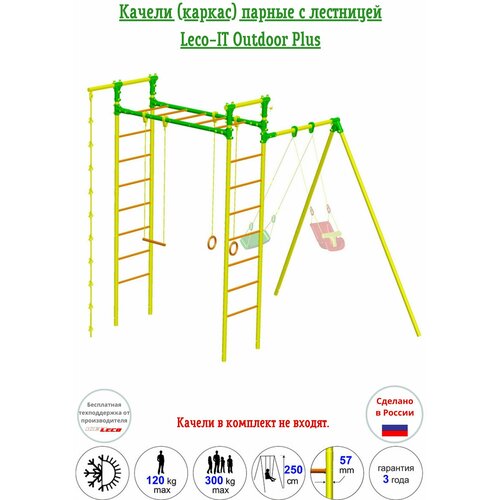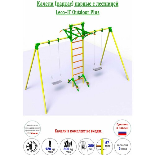 Каркас для парных качелей с лестницей Leco-IT Outdoor Plus, желто-зеленый