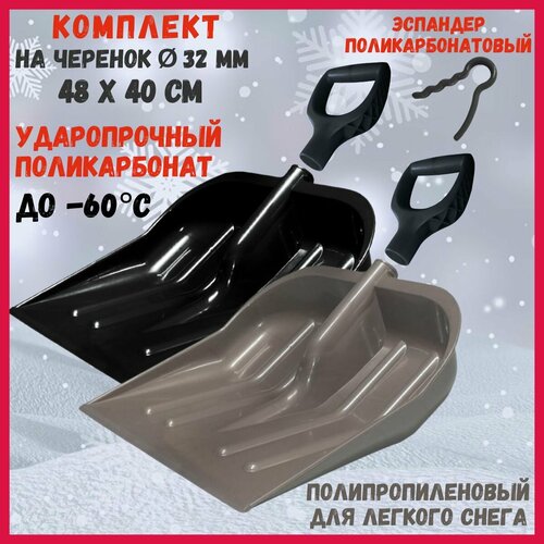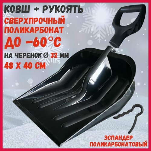 Ковш снеговой лопаты поликарбонатовый ударопрочный + ковш полипропиленовый + 2 рукояти + эспандер