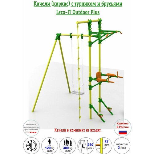 Каркас для качелей с турником и брусьями Leco-IT Outdoor Plus, желто-зеленый