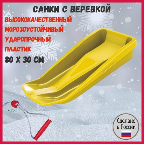 Санки, ледянки леко 80 х 30 см пластиковые, зимние, с веревкой, желтые