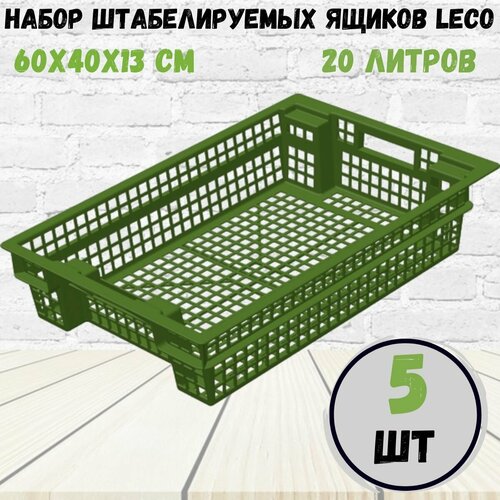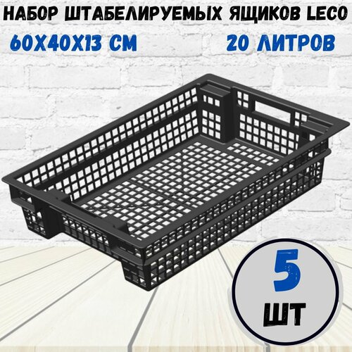 Набор из 5 универсальных пластиковых ящиков размером 60х40х20 для сбора, хранения и транспортировки овощей, фруктов, ягод, рассады, садового инструмента и инвентаря, игрушек и прочих мелочей