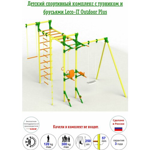 Детский спортивный комплекс с турником и брусьями Leco-IT Outdoor Plus, желто-зеленый