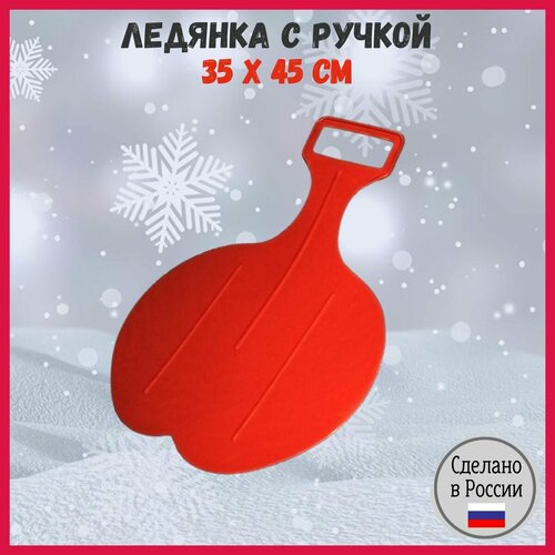 Санки, ледянки 35 х 45 см гибкие, пластиковые, круглые, с ручкой красные