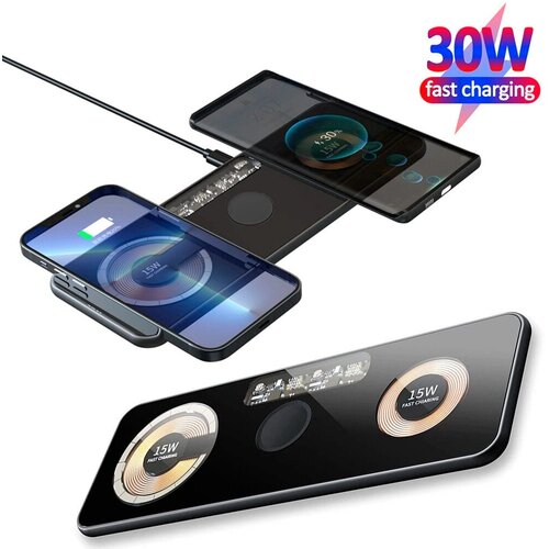 Беспроводная зарядная станция 4 в 1 для телефонов, часов и наушников 30Вт / док-станция с быстрой зарядкой Qi для Apple iPhone / Android