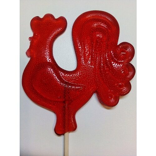 Леденец ручной работы на палочке Петушок Гигант красный 40 гр 9,5*8,5 см