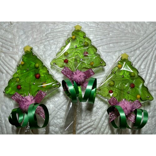 Леденцы на палочке Сувениры Подарки на Новый Год Ёлки Ёлочки новогодние 6х6,3см 3шт прозрачно-зелёные