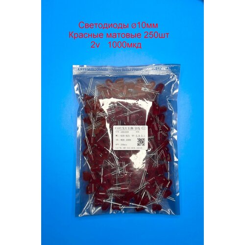 Светодиоды 10мм, Красные матовые, 2 вольта, 1000мкд, 250шт