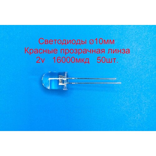 Светодиоды 10мм, Красные прозрачная линза, 2 вольта, 16000мкд, 50шт.