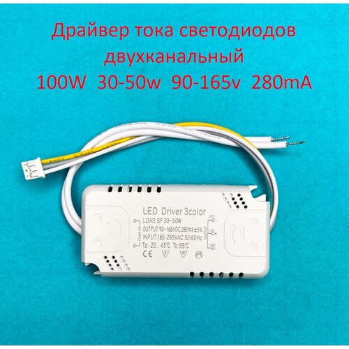 Драйвер тока светодиодов двухканальный 100W (30-50)х2 90-165v 280mA