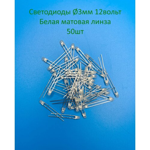 Светодиоды 3мм Белые, белая матовая линза 60° 12-15v 50шт.