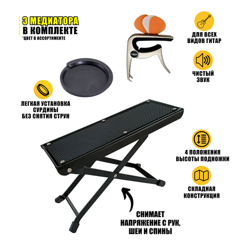 Набор гитариста KSGF-01B: сурдина, каподастр и подставка под ногу