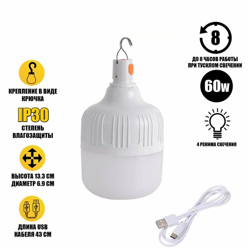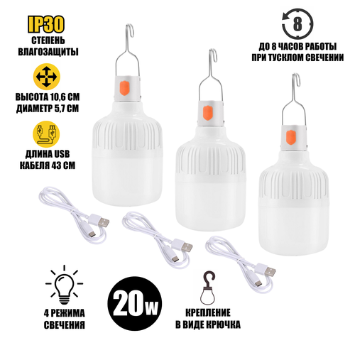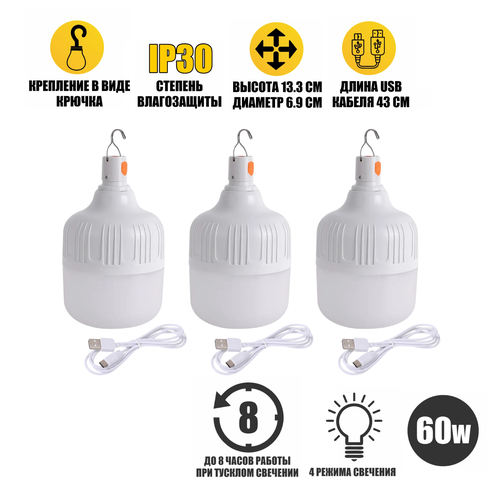Фонарь аккумуляторный 60W для кемпинга похода ночной рыбалки, 3 шт