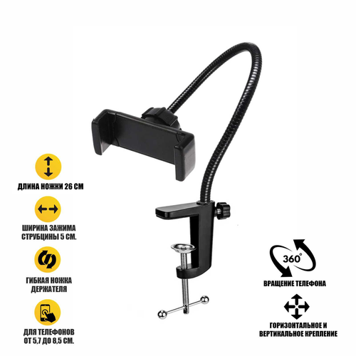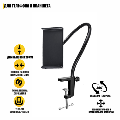 Гибкий держатель GDTS-25 для планшета и телефона до 25 см на усиленной струбцине
