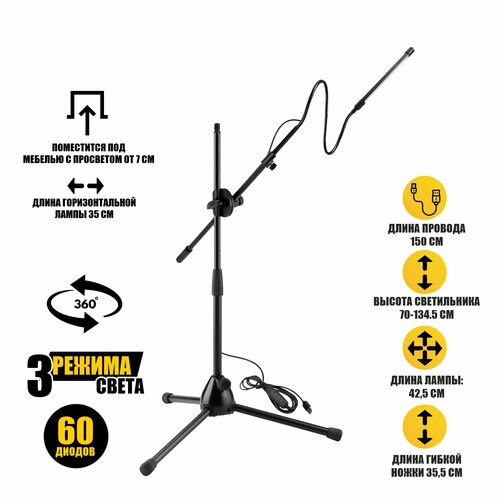Настольная стойка NB2S-PF для фитосветильника с креплением "прищепка", подставка под фитолампу для рассады