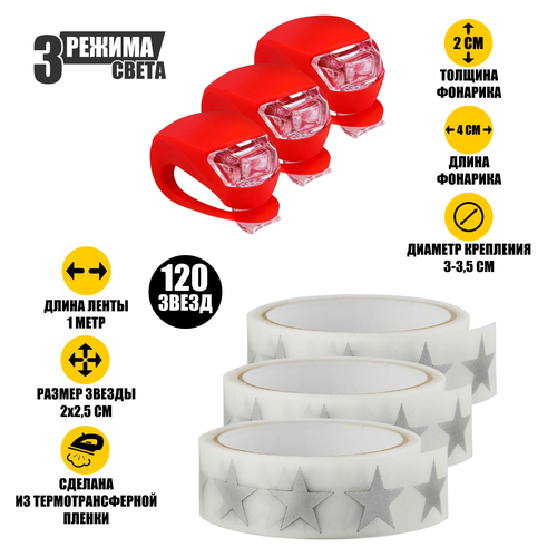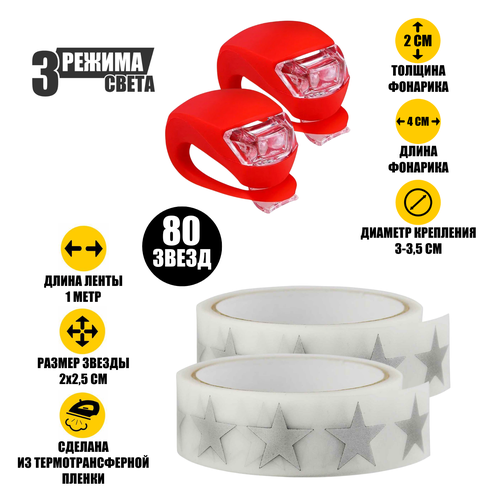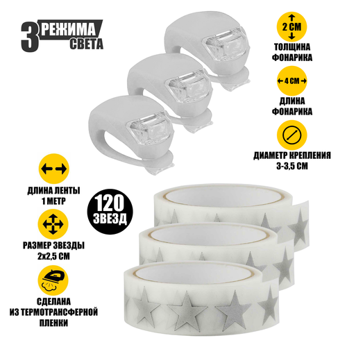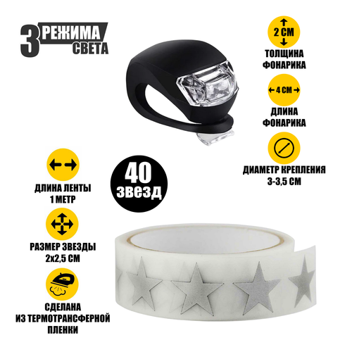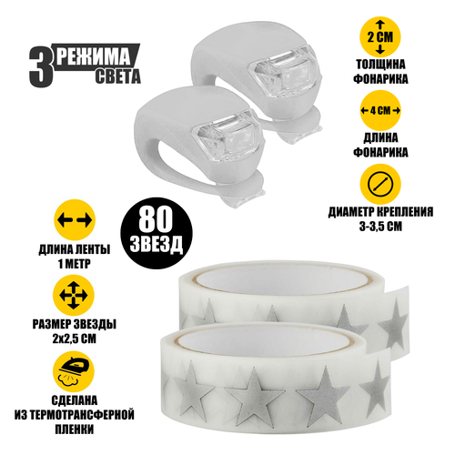 Набор BSK-B аксессуаров в коляску: 40 светоотражающих звезд и фонарик светодиодный