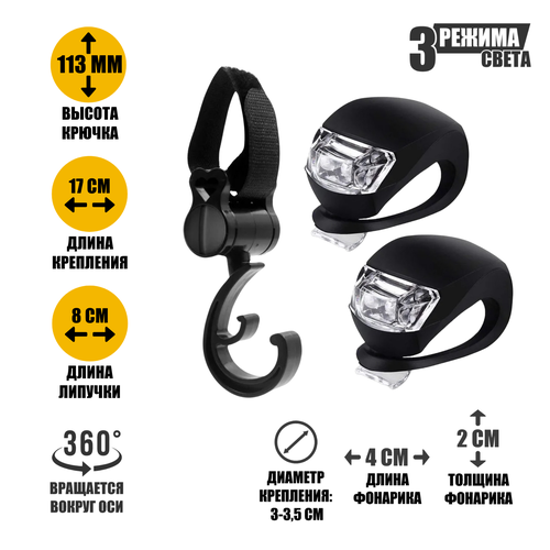 Фонарь велосипедный силиконовый, 2 шт, и крючок для сумки