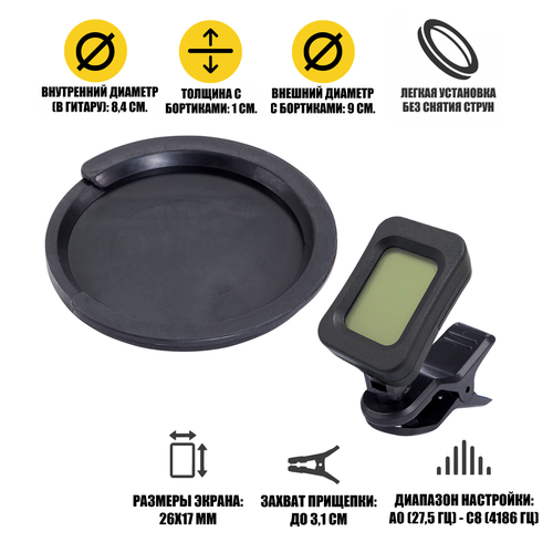 Тюнер-прищепка XRT01 и сурдина заглушка для акустической гитары