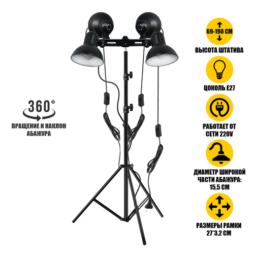 Напольный светильник JBMB-4 с 4 средними абажурами черными, торшер с регулировкой угла наклона