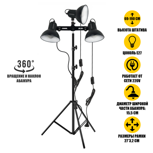 Напольный светильник JBMB-3 с 3 средними черными абажурами, торшер с регулировкой угла наклона