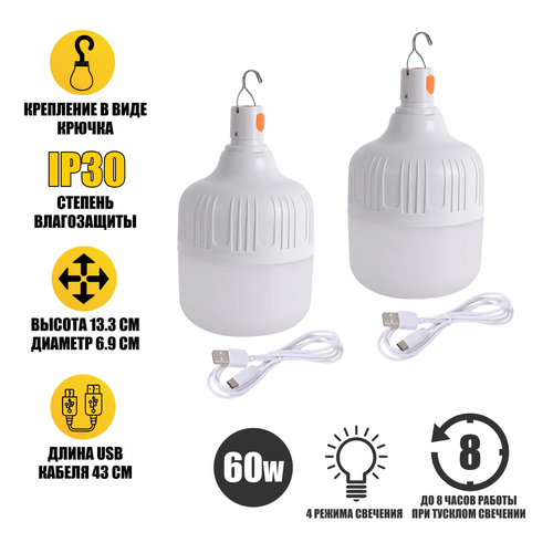 Фонарь аккумуляторный 60W для кемпинга похода ночной рыбалки, 2 шт