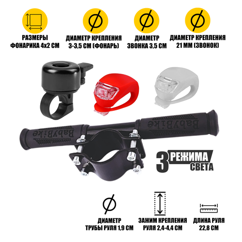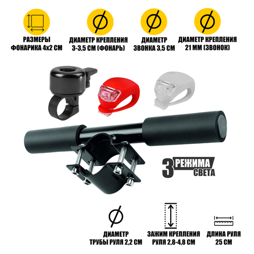 Детский руль-ручка для самоката со звонком, красным и белым фонариками