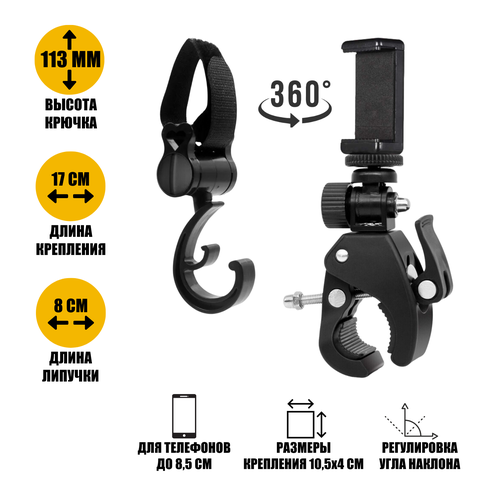 Крепление с захватом до 3,7 см зажим для телефона и крючок для сумки на велосипед