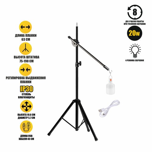 Фонарь аккумуляторный, 20W для кемпинга, походов, ночной рыбалки, 2 шт