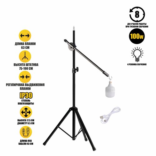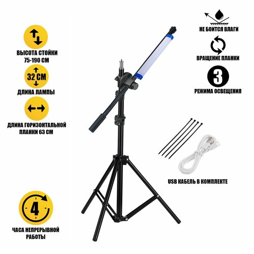 Лампа 32 см переносная автомобильная, холодный свет, с магнитным креплением на штативе JBH-63