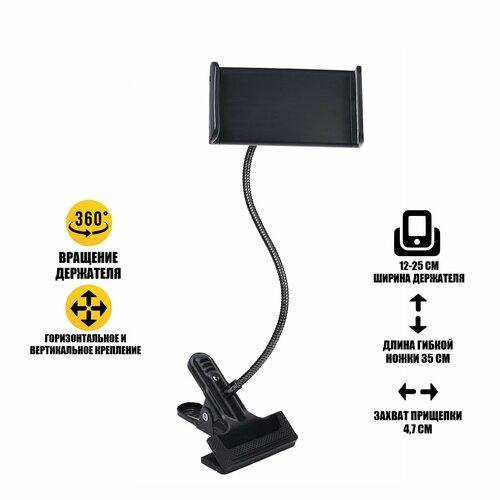Гибкий держатель GD для телефона или планшета размером до 25 см на прищепке PR1
