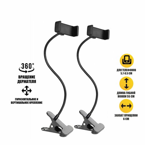 Гибкий держатель GDPP для телефона на прищепке, пластик, 2 шт