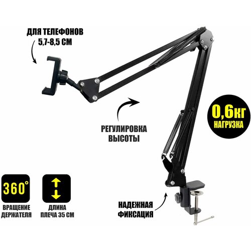 Настольная стойка пантограф NB-354 с держателем для телефона на гибком шаровом креплении