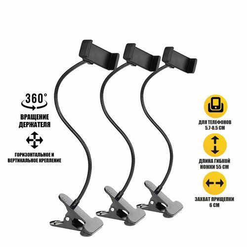 Гибкий держатель GDPP для телефона на прищепке, пластик, 3 шт