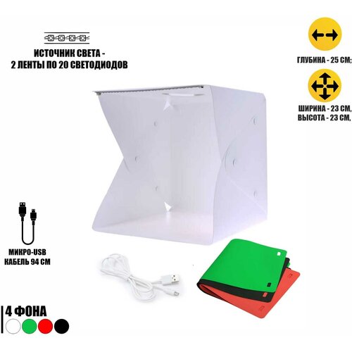 Складной фотобокс с LED-подсветкой для предметной съемки, 4 фона