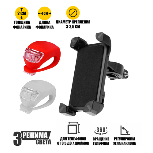 Держатель для телефона Bike Holder Y11-2F и фонари велосипедные, белый и красный