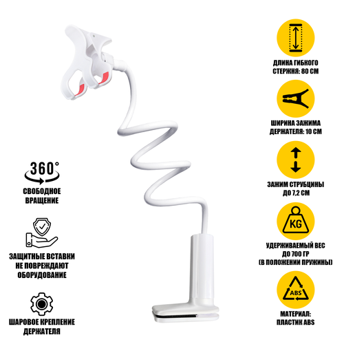 Зажим для видеоняни на гибком креплении с пластиковой струбциной, цвет белый