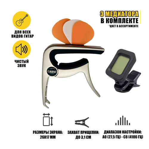 Тюнер-прищепка XRT01 и каподастр для гитары