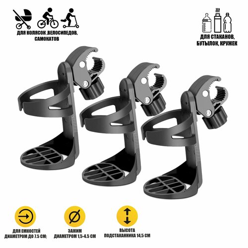 Подстаканник для коляски универсальный с креплением на ручку, 3 шт