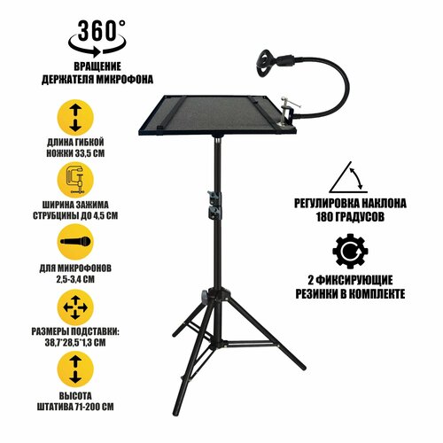 Напольная подставка PLS-38-GDM для планшета с гибким держателем ручного микрофона