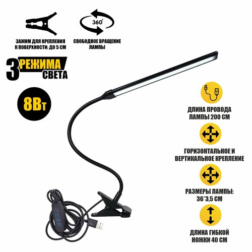 Переносной гибкий светильник MPP-35 на прищепке, многофункциональная подсветка светодиодная для пюпитра, книги, мольберта и ноутбука