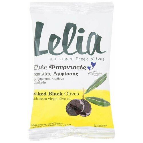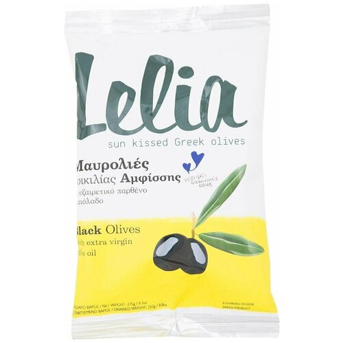 Оливки LELIA, черные с косточкой, натуральные в оливковом масле, пакет, 275 г