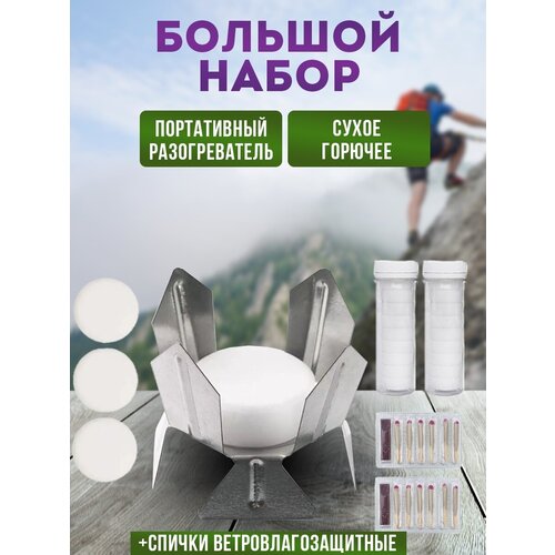 Набор для похода 3в1, сухое горючее, водо-ветроустойчивые спички, таганок, розжиг углей, мангала