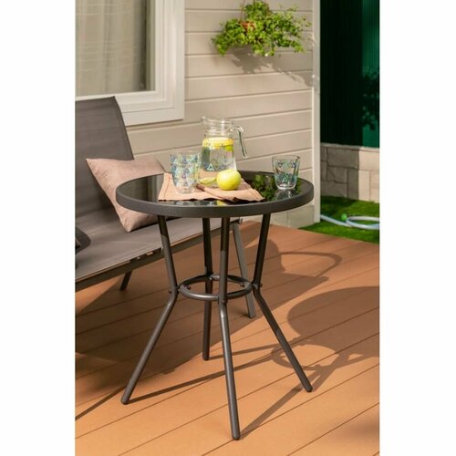 Стол садовый круглый 59.5x59.5x70 см металл/стекло чёрный