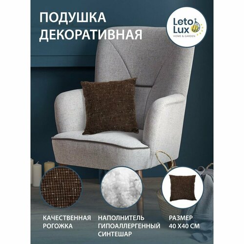 Подушка из рогожки шоколадного цвета в клетку для дома