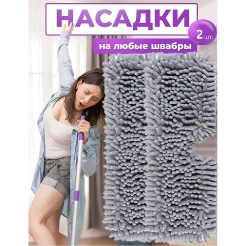 Насадка для швабры Микрофибра 55см 2шт. (серая), liao