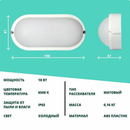 Светильник жкх Банник LT-LBWP-01-IP65-18W-6500К LED овальный LIGHTPHENOMENON