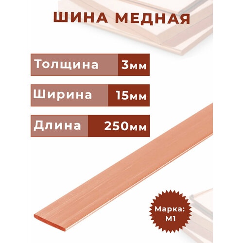 Шина медная 3*25*250 мм (ШхВхД) / медная шина электротехническая / медная полоса