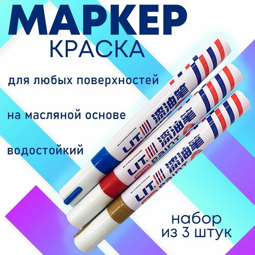 Маркер - краска масляный водостойкий перманентный красный, золотой, (набор 3 шт.)